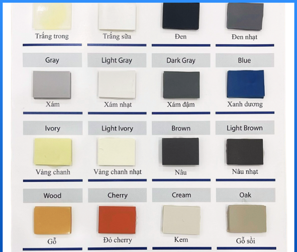 Lưu ý: Màu sắc keo có thể thay đổi đôi chút tùy theo từng lô sản xuất hoặc nhà cung cấp. Trước khi thi công, bạn nên kiểm tra mẫu màu thực tế để đảm bảo tính thẩm mỹ cao nhất.