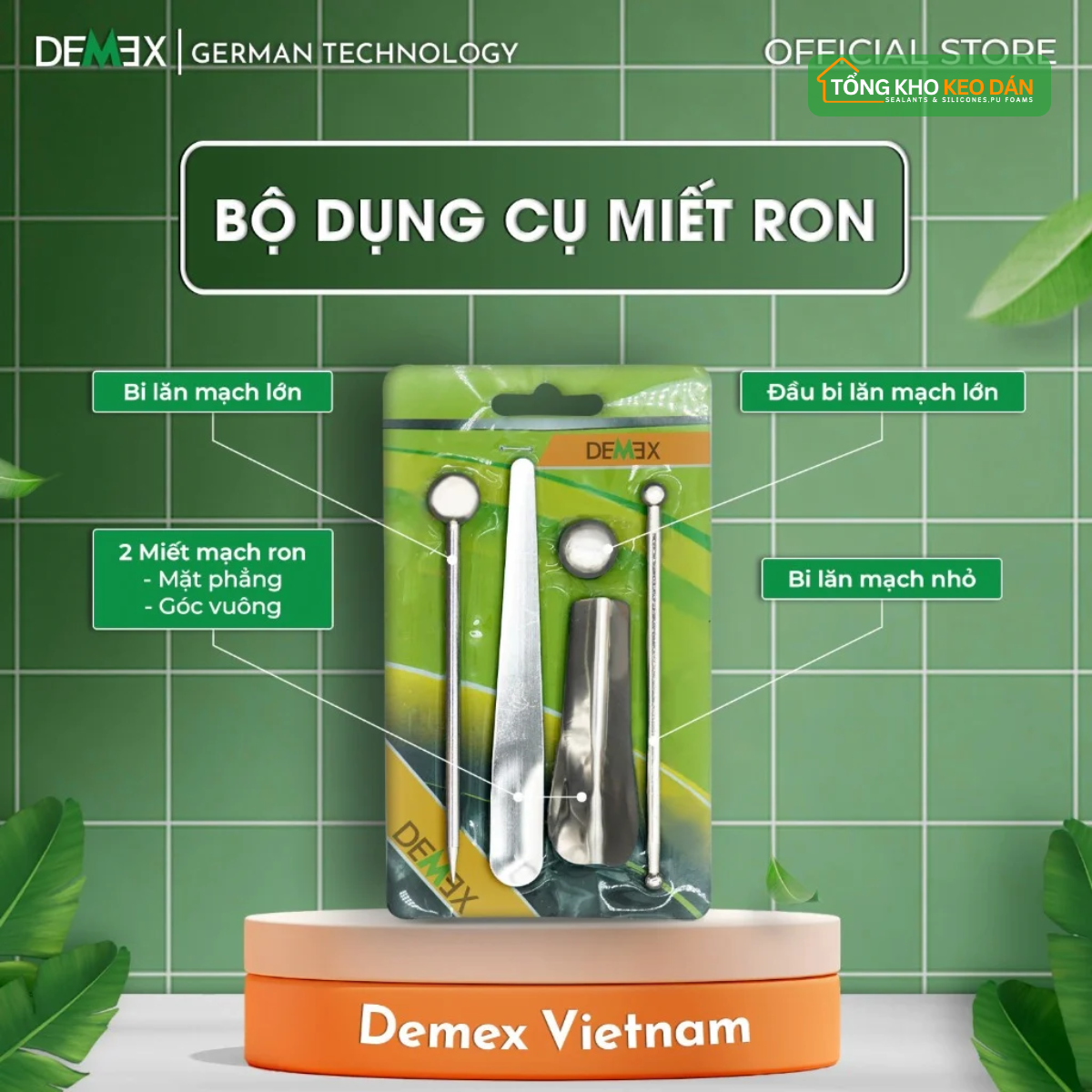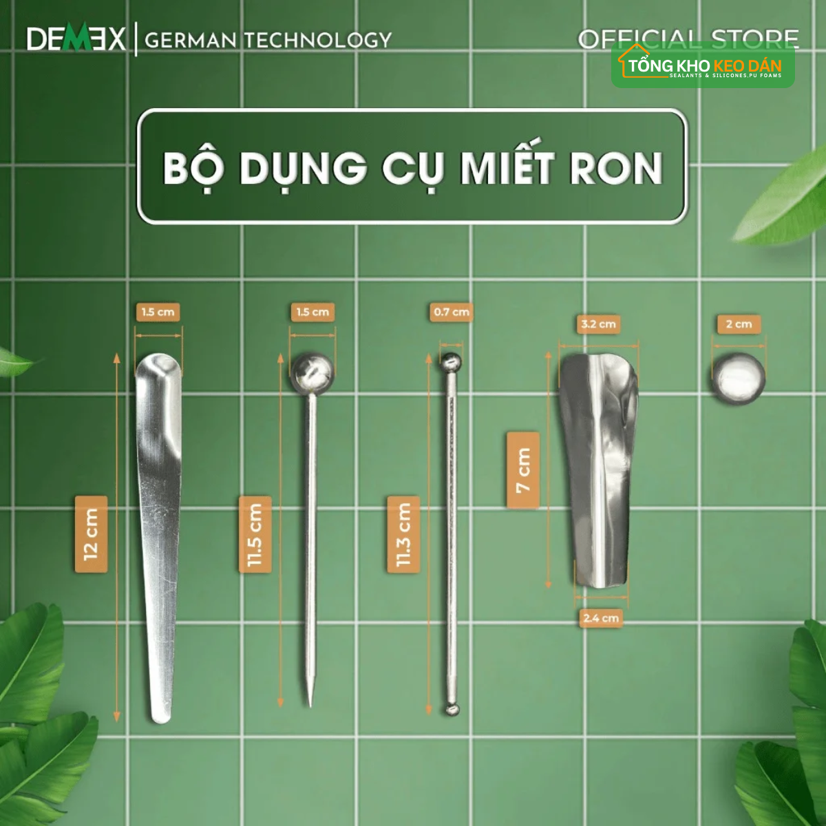 Bộ dụng cụ miết ron Demex được thiết kế nhằm đảm bảo tính thẩm mỹ, độ chính xác và độ bền cao cho các đường ron.