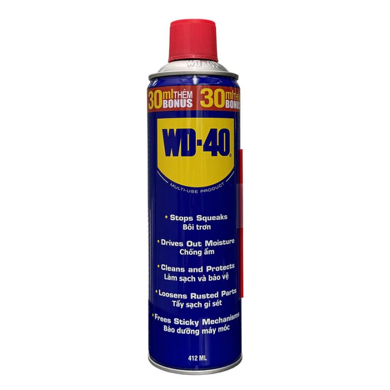 - BÔI TRƠN: Dầu WD-40 412ml có độ bám dính mạnh, giúp phân bố đều các thành phần bôi trơn trên mọi chi tiết máy mà không chứa silicone hay các phụ gia khác có thể thu hút bụi bẩn.