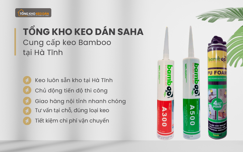 Hiểu rõ đặc thù thi công và thời gian gấp rút của các dự án, Tổng Kho Keo Dán SAHA đã chủ động thiết lập hệ thống phân phối keo Bamboo tại Hà Tĩnh với đầy đủ các dòng sản phẩm chuyên dụng. Không chỉ đảm bảo nguồn hàng chính hãng 100%, với lợi thế kho hàng ngay tại Hà Tĩnh SAHA đảm bảo giao hàng nhanh tận công trình. Đồng thời, Saha luôn đảm bảo chính sách báo giá minh bạch, chiết khấu tốt, và đội ngũ tư vấn kỹ thuật am hiểu sản phẩm, hiểu công trình địa phương.