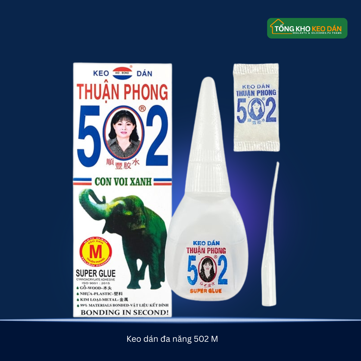 Keo dán đa năng Keo 502 CON VOI XANH (M) là loại keo siêu dính, thuộc nhóm keo cyanoacrylate. có khả năng dính nhanh và mạnh, thích hợp cho nhiều loại vật liệu. Được thiết kế đặc biệt cho các ứng dụng kết dính với hầu hết các loại vật liệu xây dựng, sinh hoạt và đời sống hằng ngày.
