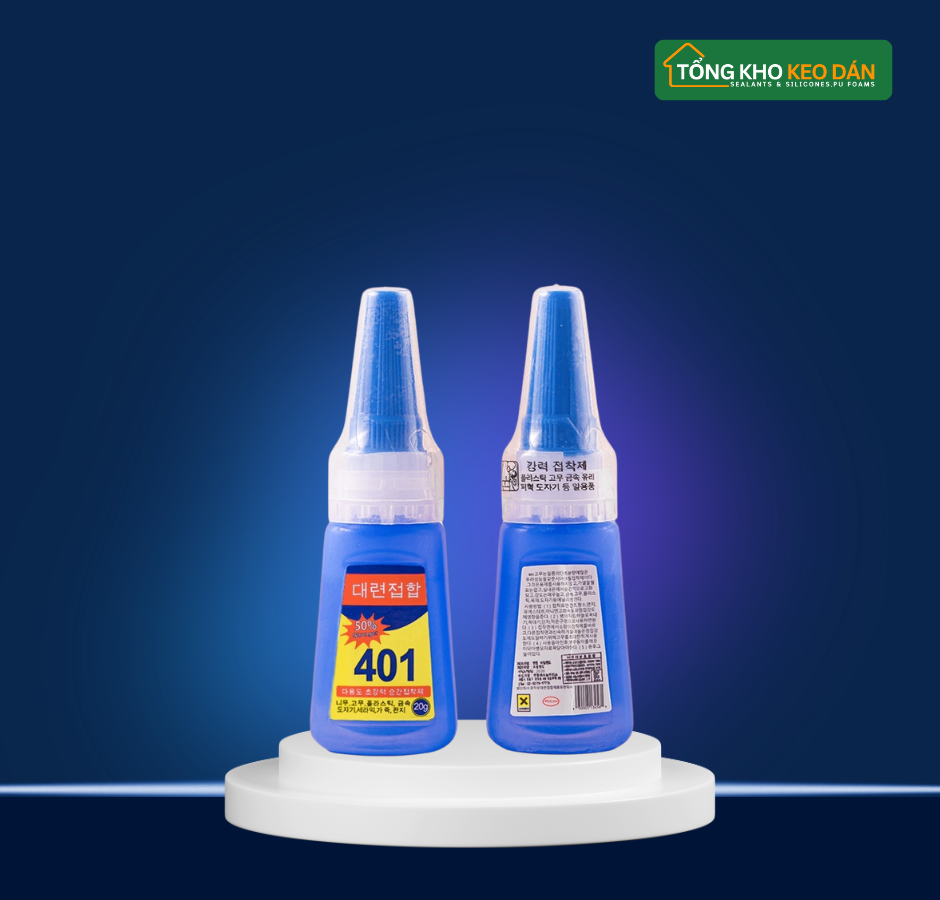 Keo dán 401 là dòng keo cyanoacrylate công nghiệp nổi tiếng với khả năng kết dính cực nhanh và độ bám dính cao trên nhiều loại vật liệu khác nhau. Sản phẩm được sử dụng phổ biến trong các ngành sản xuất, sửa chữa cơ khí, lắp ráp linh kiện và nhiều ứng dụng dân dụng nhờ khả năng liên kết chắc chắn, thi công đơn giản và hiệu quả cao.