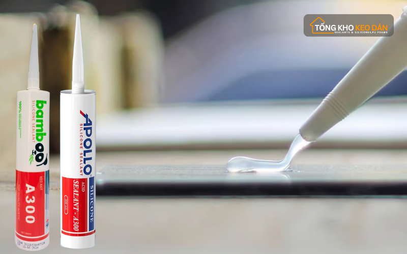 - Apollo A300 trắng trong: Loại keo silicon axit phổ biến, chất lượng cao, phù hợp với nhiều ứng dụng trong dán, trám vật liệu kính.