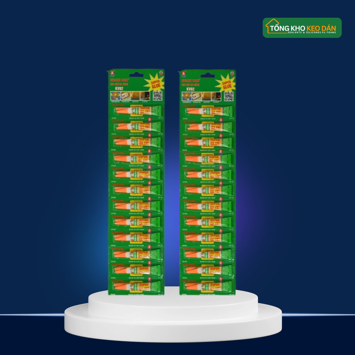 Keo dán đa năng được chiết xuất từ chất Cyanoacrylate và Acetate làm thành phần chủ đạo, ngoài ra còn được pha chế thêm một số chất cải tính và chất ổn định. Ứng dụng keo Keo típ đa năng KV 02: Vật liệu nhựa, Vật liệu gỗ, Vật liệu gốm sứ, Vật liệu đồ da.