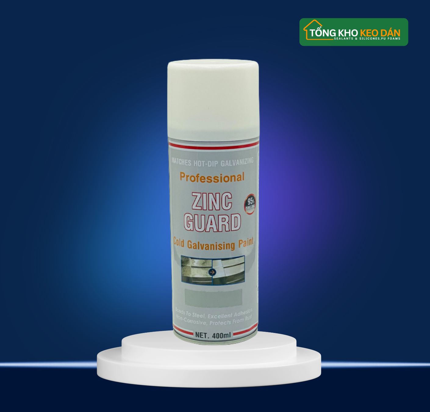 Sơn xịt kẽm lạnh Zinc Guard 151 (ZG151) là dòng sơn kẽm lạnh cao cấp nhập khẩu trực tiếp từ Úc (EMONRA), dạng chai xịt tiện dụng 400ml, màu xám kẽm sáng. Sản phẩm có hàm lượng kẽm sau khi khô đạt tới 95%, đã được chứng nhận bởi Trung tâm Kỹ thuật Tiêu chuẩn Đo lường Chất lượng 3 (Quatest 3), mang lại khả năng chống ăn mòn điện hóa tương đương mạ kẽm nhúng nóng.