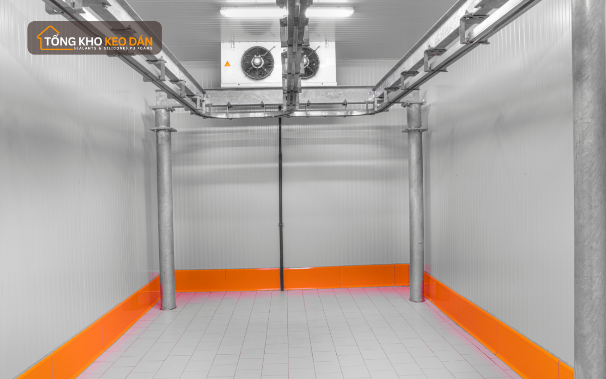 - Tương thích với nhiều vật liệu: Phải bám dính tốt trên các vật liệu đặc thù của kho lạnh như panel PU, nhôm, inox, nhựa PVC…